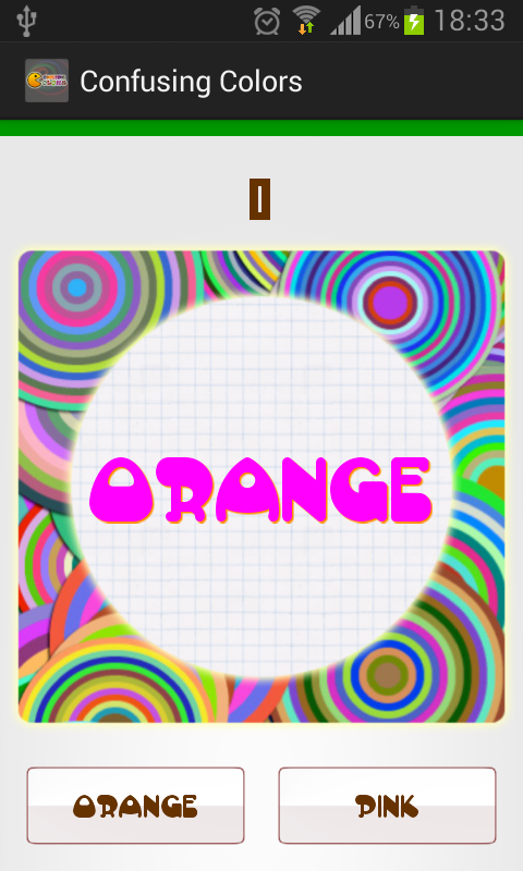 Do you want to try a simple, fun Android game based on this nice effect? All you need to do is choosing the button that matches the color of the center text. Does it look easy? Try it! Click image below and install it from Google Play Store. It's free, of course.
